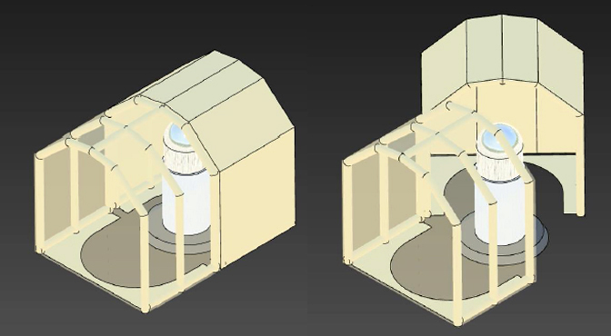 Extreme temperatures require Airmen to follow “Work Rest Cycles” to minimize weather related injuries such as hypothermia or heat exhaustion. The new, two-piece, 20-foot-tall prototype will be set-up with the one shelter fixed and connected to the Environmental Control Unit, with the second shelter enclosing the antenna and crane used in maintenance. The second shelter can pivot open for the crane to complete maintenance operations and pivot back to seal off the work area once the crane has completed its work.